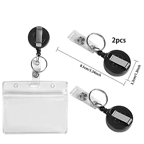 2 Sets Porta Badge Retrattile da Collo, ID Porta Carte Trasparenti, Retrattile Bobina Badge, Porta Badge Collo Orizzontale con Cordino da Collo per ID Carte Ufficio Scuola Exhibition, Nero