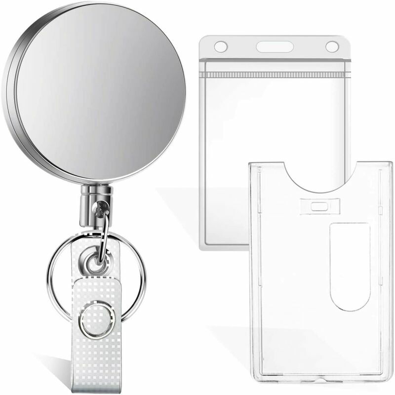 Robusta bobina per badge in metallo: il porta badge retrattile in metallo è realizzato con un corpo in lega di zinco interamente in metallo con finitura lucida, resistente per l'uso quotidiano. Inoltre, il porta documenti retrattile per impieghi gravosi ha una forte forza di retrazione fino a 200 g/7 once, molto più grande di altri porta documenti deboli con una capacità di circa 85 g/3 once Porta documenti in plastica per impieghi gravosi e Supporto per cerniera: il set di bobine per badge viene fornito anche con un porta carte d'identità in plastica e un porta documenti con cerniera in PVC impermeabile. Ogni cornice ID si adatta a carte di credito di dimensioni normali, biglietti da visita, tessere formato patente di guida, carte infermiera, carte moschettone e altro ancora. (Nota: realizzato in plastica rigida, questo porta carte d'identità è progettato per carte singole inferiori a 1 mm, non per carte più spesse. Il porta carte d'identità in PVC può contenere comodamente fino a 5