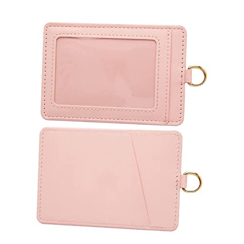 Porta badge verticale in pelle, con finestra trasparente per badge e nastro per marsupio, colore: rosa