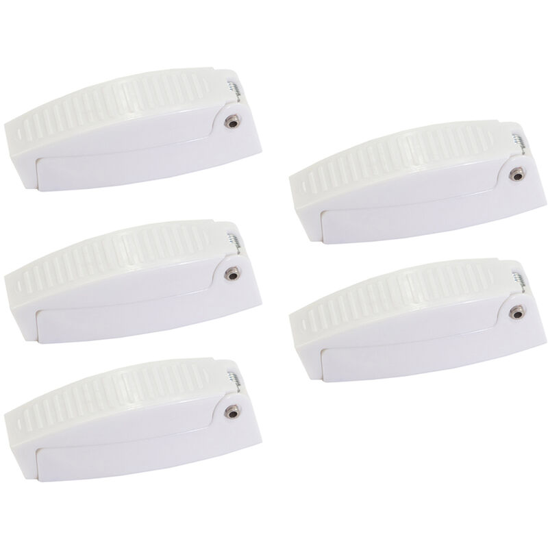 Caratteristiche: 5 pezzi di prese del bagaglio possono tenere la porta aperta facilmente e non si schiantano su di te. Design semplice, facile da installare e utilizzare. Piccole dimensioni e leggero, facile da trasportare, gadget molto utile. Ampia applicazione, adatta per porte di camper, rimorchi e camper. Realizzato in ABS di alta qualita, non arrugginisce e resistente. Specifica: Materiale: ABS Colore bianco Formato del pacchetto: 23 * 16 * 2 cm / 9,06 * 6,30 * 0,79 pollici Peso del pacchetto: ca. 60g / 2.12oz Lista dei pacchetti: 5 * Catture porta bagaglio