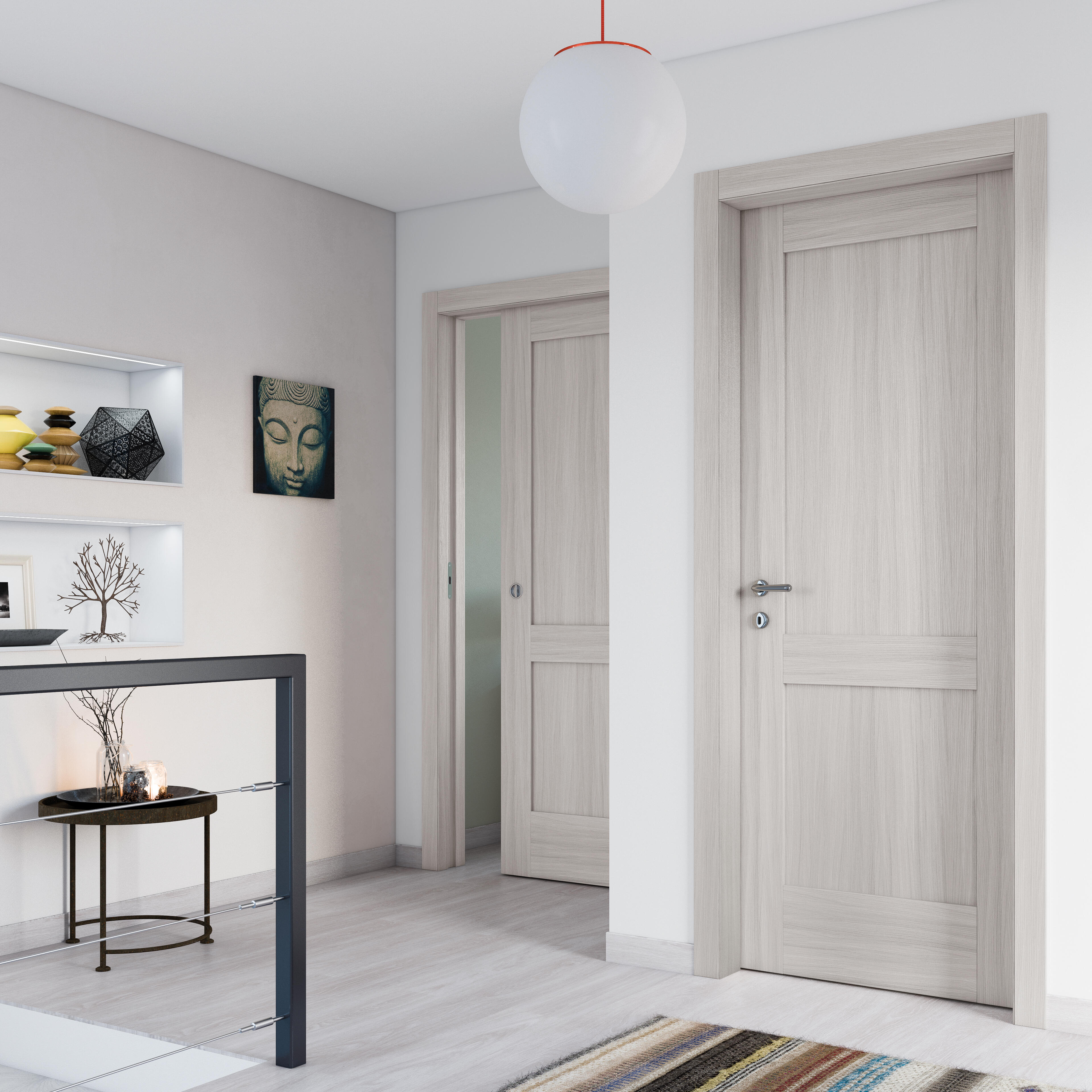 In laminato, telaio dritto, coprifili ad incastro. Maniglia da acquistare separatamente. Qualità Standard, porta con un buon rapporto qualità e budget. Perfetta per una casa di proprietà. Apertura a battente comoda e funzionale. Finitura resistente e funzionale. Il laminato resiste ai graffi ed è molto facile da pulire. Effetto spazzolato che riproduce le venature del legno donando un effetto materico molto naturale