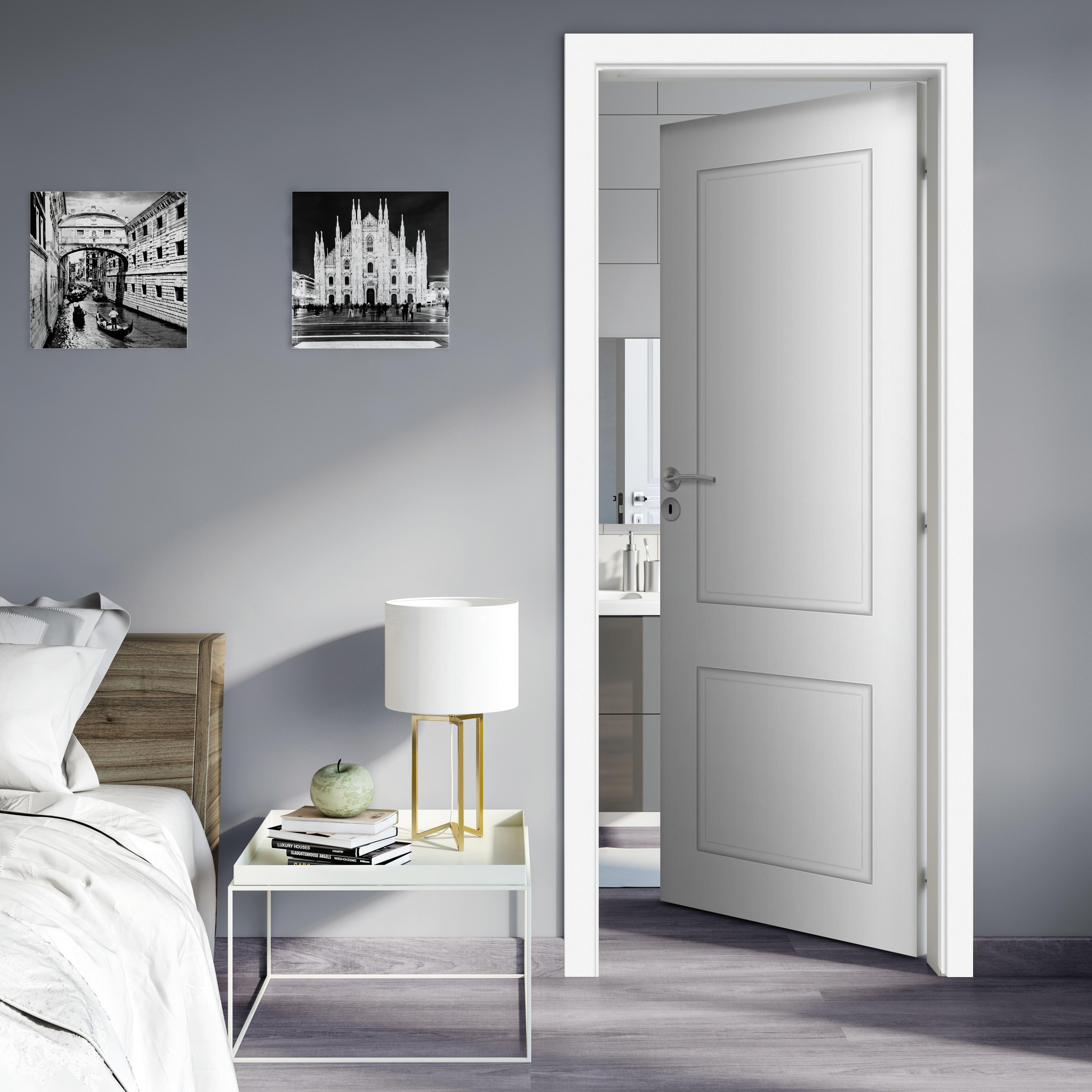 In MDF, microteck, telaio dritto, coprifili ad incastro. Maniglia ida acquistare separatamente. Apertura a battente comoda e funzionale. Finitura microteck conveniente e pratica da pulire