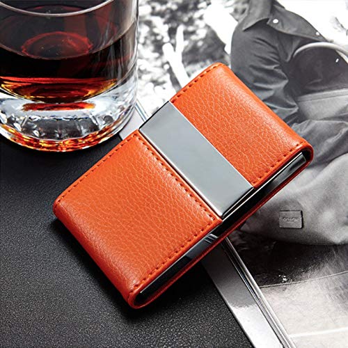 Porta biglietti da visita multifunzionale portatile a doppia apertura in acciaio inox, pratico e moderno porta carte di credito per lavoro, viaggio di lavoro (arancione)