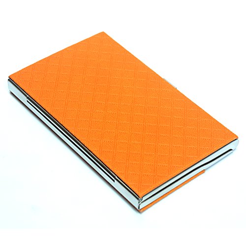 Porta biglietti da visita tascabile in acciaio inox, in pelle goffrata, porta carte di credito, porta carte di credito e nome aziendale, con fodera in flanella, colore: arancione