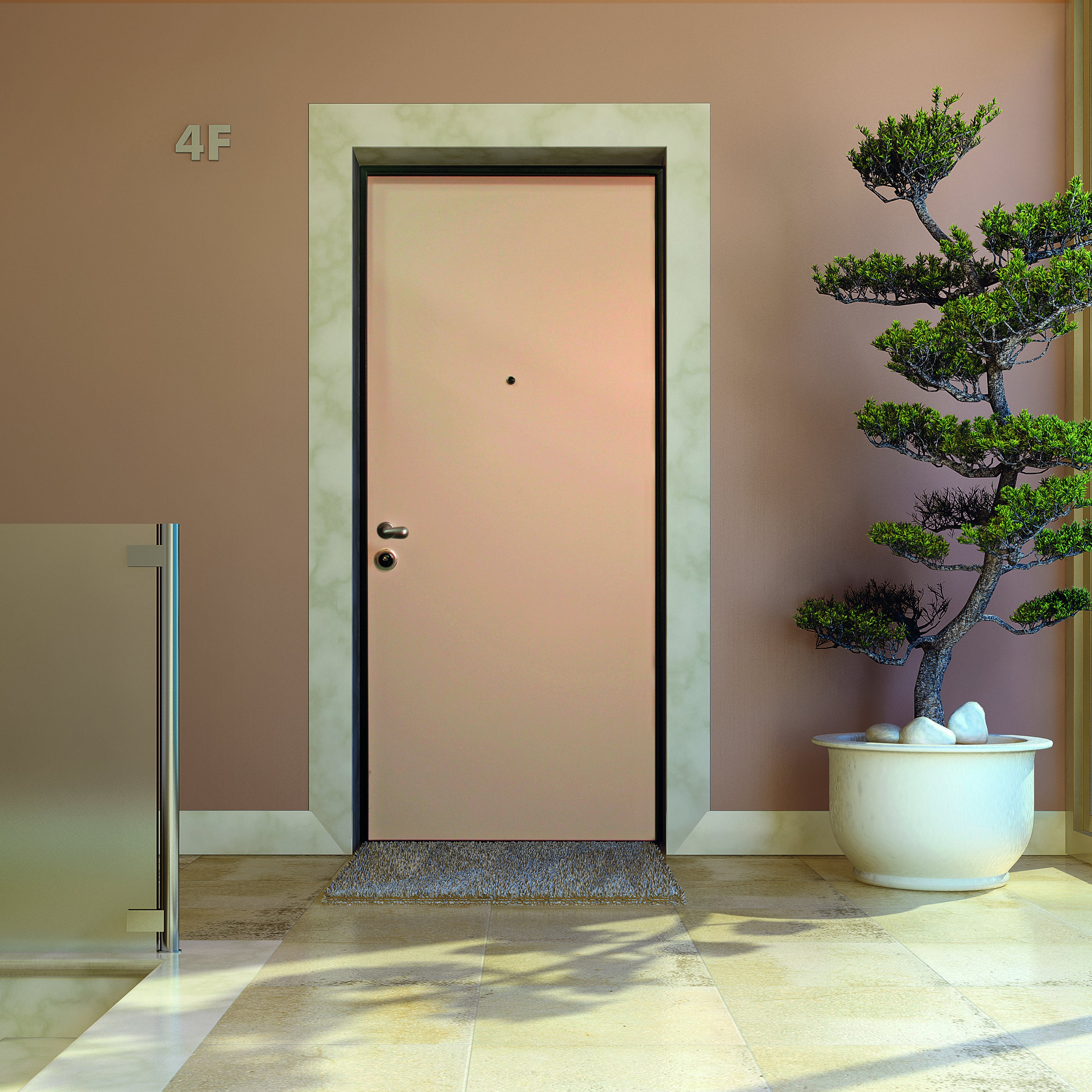 Pannello esterno laminato bianco, classe di sicurezza 3, serratura cilindro europeo con defender, punti di chiusura 7. Consigliata per appartamenti posti all'interno di un condominio. Pannello indicato per ingressi situati in ambienti interni. Protezione antitrapano e antishock del cilindro grazie alla serratura defender. La serratura comfort lock si aziona con rotazione della maniglia senza necessità di utilizzare le chiavi