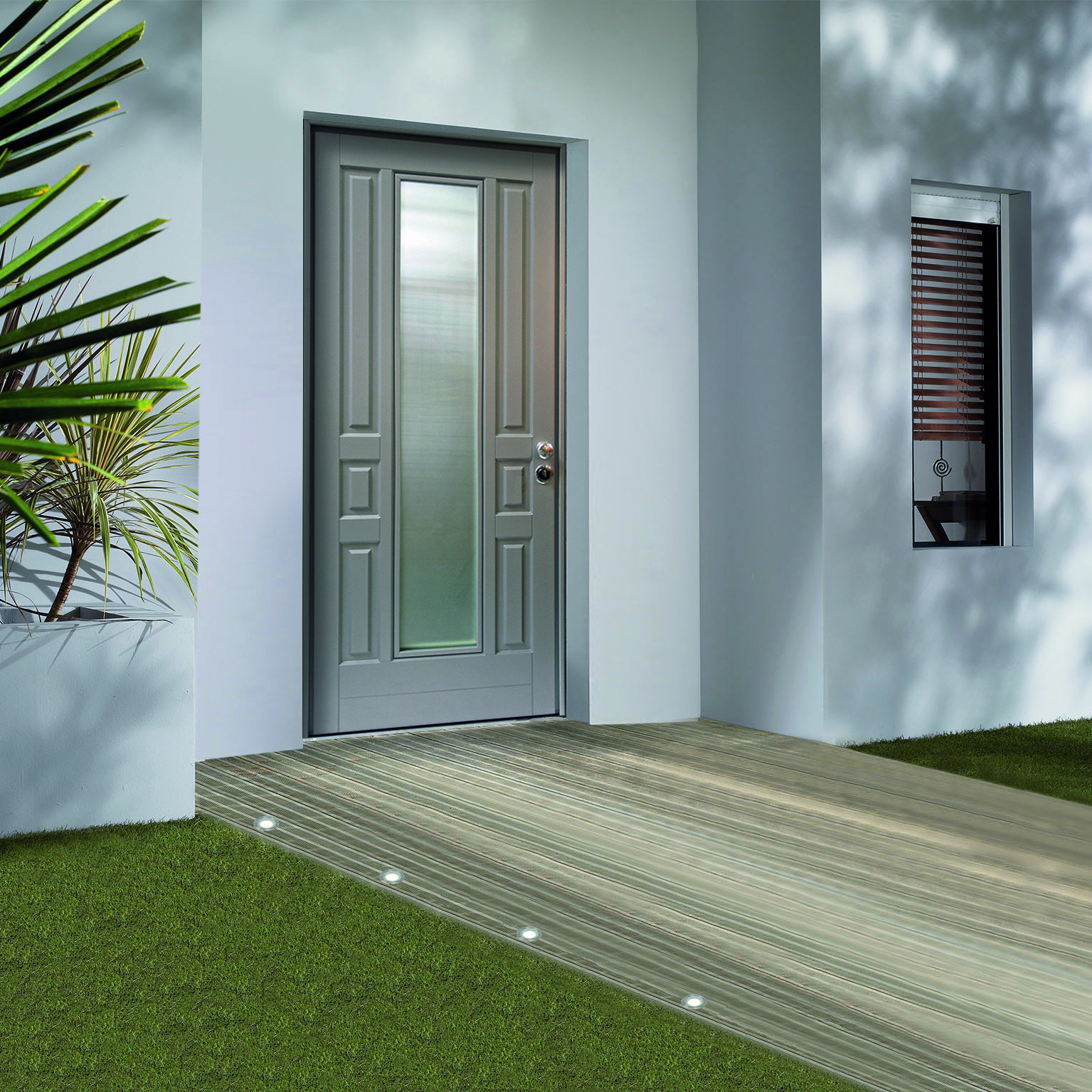 Pannello esterno mdf laccato grigio, classe di sicurezza 3, serratura cilindro europeo con defender, punti di chiusura 9. Consigliata per villette e case indipendenti. Pannello indicato per ingressi situati in ambienti esterni esposti alle intemperie. Protezione antitrapano grazie alla serratura con defender. Vetro blindato anti sfondamento. Soglia antispifferi, aumenta l'isolamento termico ed evita l'ingresso di polvere ed insetti