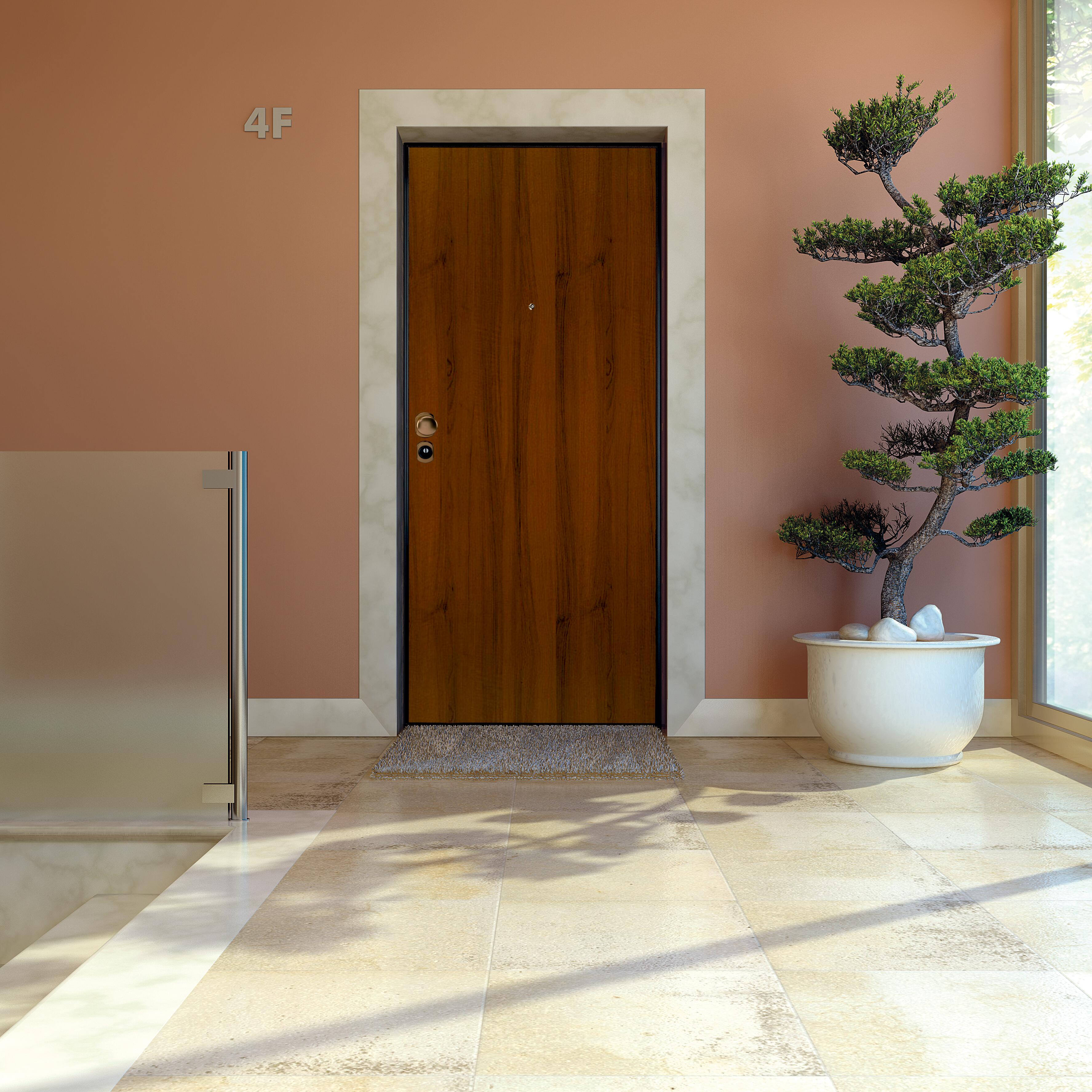 Classe antieffrazione 3, misure 90x200cm, senso apertura SX, serratura a cilindro europeo con defender e 5 chiavi padronali, 12 punti d'ancoraggio, pannelli interno/esterno lisci 5mm, interno bianco ed esterno noce, stipite/carenatura nero, maniglieria interna argento/esterna bronzo, falso telaio compreso.. Consigliata per appartamenti posti all'interno di un condominio. Pannello indicato per ingressi situati in ambienti interni. Protezione antitrapano della serratura. Il cilindro della serratura è protetto con defender antitrapano per maggiore sicurezza. Soglia antispifferi, aumenta l'isolamento termico ed evita l'ingresso di polvere ed insetti. Limitatore di apertura, permette di aprire la porta parzialmente, tendendola comunque bloccata per maggiore sicurezza