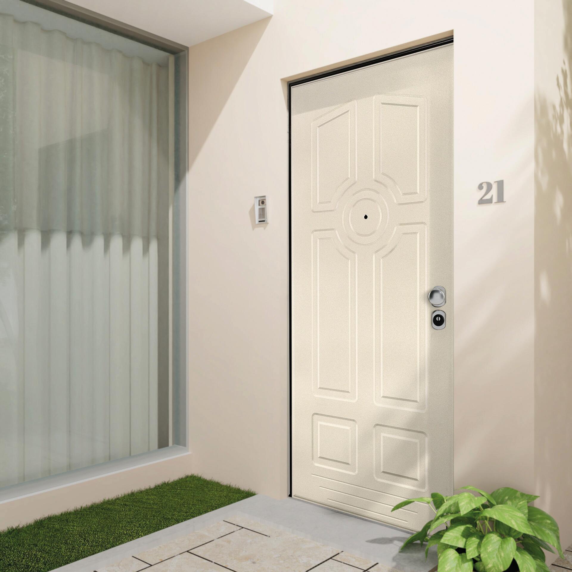 Pannello esterno mdf laccato bianco, classe di sicurezza 3, serratura yale cilindro europeo con defender, punti di chiusura 6. Consigliata per villette e case indipendenti. Pannello indicato per ingressi situati in ambienti esterni esposti alle intemperie. Ideale per garantire comfort termico e una riduzione dei consumi energetici. Limitatore di apertura, permette di aprire la porta parzialmente, tendendola comunque bloccata per maggiore sicurezza. Protezione antitrapano della serratura. Il cilindro della serratura è protetto con defender antitrapano per maggiore sicurezza