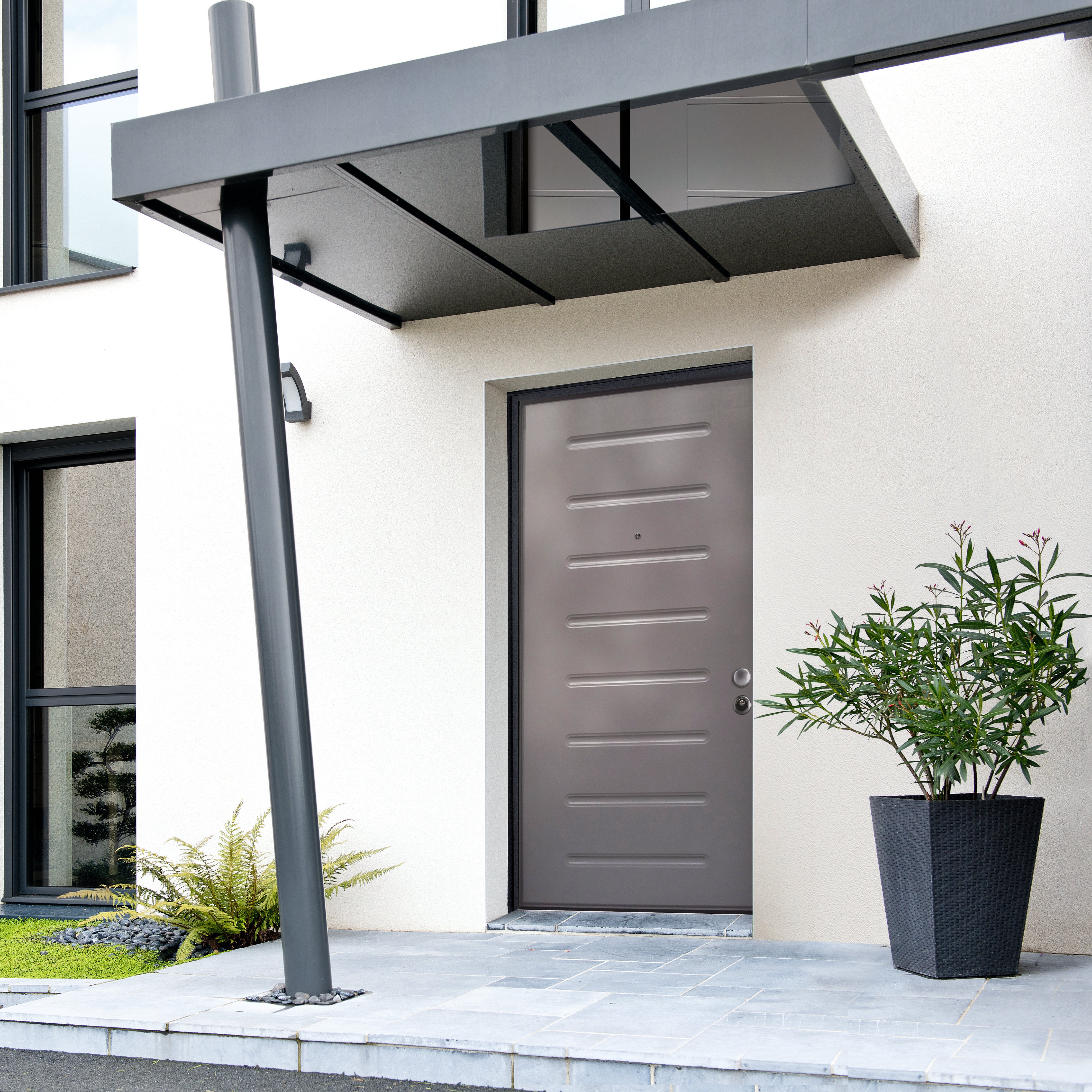 Pannello esterno alluminio grigio, classe di sicurezza 3, serratura cilindro europeo con defender, punti di chiusura 8. Consigliata per villette e case indipendenti. Pannello indicato per ingressi situati in ambienti esterni esposti alle intemperie. Protezione antitrapano grazie alla serratura con defender