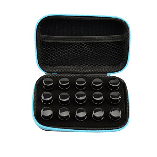 Porta boccette nero per 15 boccette di oli essenziali da 1 ml, 2 ml e 3 ml, delle dimensioni di 13,5 x 8,5 x 4,5 cm