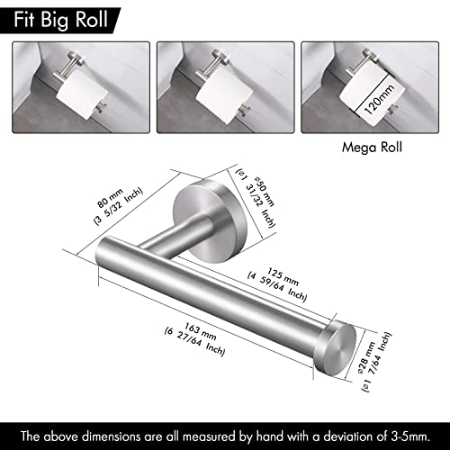 Adatto a rotoli grandi: max. la lunghezza del rotolo di carta è 4,92". La proiezione è 3,15". Contiene anche rotoli di carta igienica di grandi dimensioni. La grande manopola in acciaio inossidabile all'estremità della barra impedisce la caduta del rotolo di carta igienica.