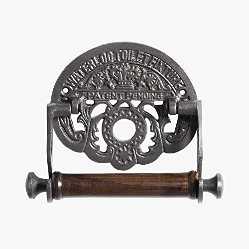 Portarotolo da parete vittoriano dal design vintage: Questo è un porta rotolo di carta igienica a parete in stile vittoriano in stile vintage Waterloo, realizzato in ghisa solida. Il porta rotolo viene fornito con un passante in legno per la carta igienica per adattarsi e muoversi facilmente. Il design vittoriano di questo porta rotolo di carta igienica esalta la bellezza del tuo bagno e aggiunge un fascino rustico e vecchia scuola al look generale.