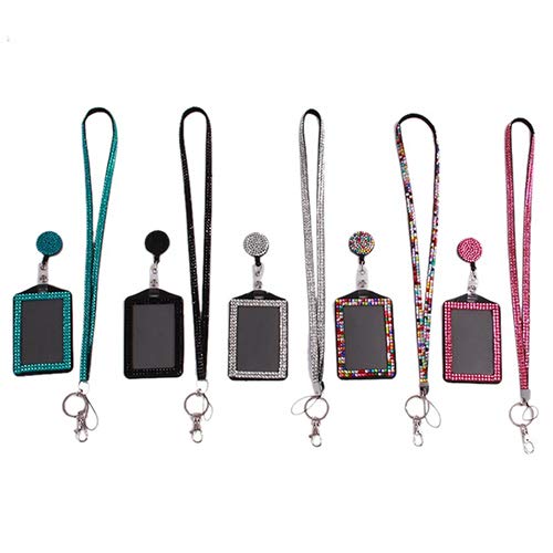 Porta carte di credito con cordino e strass da appendere al collo, retrattile, per badge, chiavi, biglietti da visita, carte di credito Misura unica Silver 58 cm