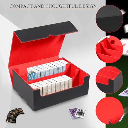 【Scatola portaoggetti sicura】 Questa scatola porta carte è abbastanza grande da contenere facilmente più di 2400 carte da gioco collezionabili senza maniche. Adatto anche per 1050+ carte a doppia manica o 1800+ carte a busta singola, ma non con buste con caricamento dall'alto e porta carte magnetici. 3 scomparti con 8 divisori per carte 1 scomparto con 4 divisori per carte