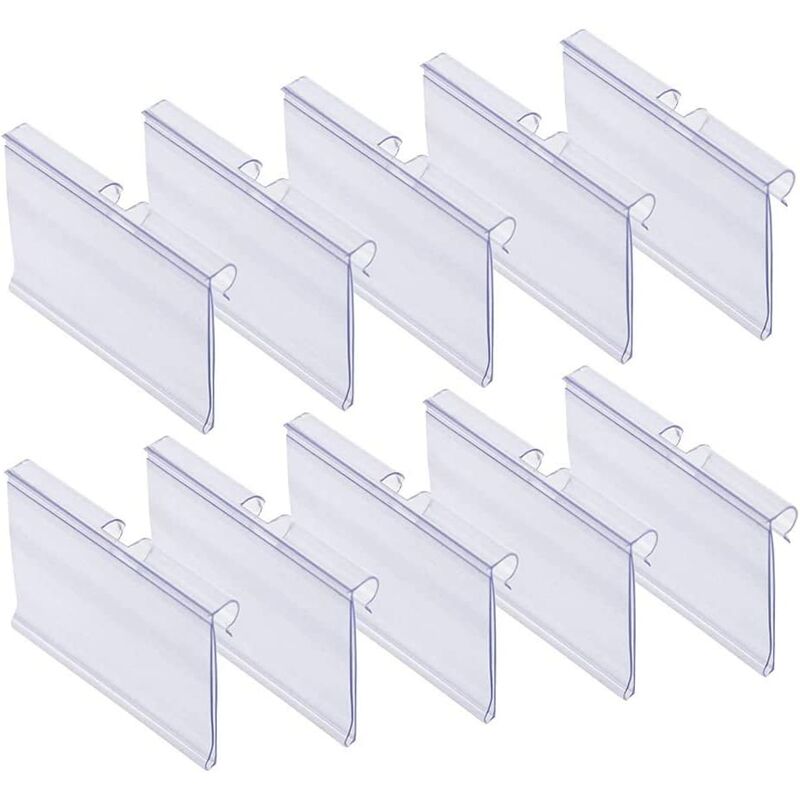 La confezione contiene 70 pezzi di porta cartellino del prezzo - : il porta cartellino del prezzo ha un aspetto cristallino che ti consente di vedere completamente i tag per una facile lettura. Allo stesso tempo, il design dello slot della scheda del prodotto consente di cambiare la carta dell'etichetta in qualsiasi momento, consentendo di aggiornare immediatamente le informazioni sui prezzi. [Qualità Premium]: il nostro porta etichette è realizzato in plastica PVC di alta qualità con elevata trasparenza, che garantisce la chiarezza di questo prodotto. È leggero ma resistente, durevole, non facile da rompere o deformare e un'ottima scelta per un uso a lungo termine. [Design eccellente]: ogni porta cartellino del prezzo ha due orecchie sulla parte superiore di un lato che ti consentono di attaccare il supporto alla custodia di metallo o alla scatola di immagazzinaggio e rimuoverlo in qualsiasi momento quando non lo fai bisogno di essa. Allo stesso tempo, il design della posizione