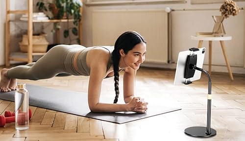 [ Base solida e stabile ]: il supporto per tablet è composto da una base in metallo super robusta, che è abbastanza resistente da contenere il telefono e i tablet. scivolare e graffiare. Il supporto fornisce un supporto sicuro e protetto per il tuo dispositivo.