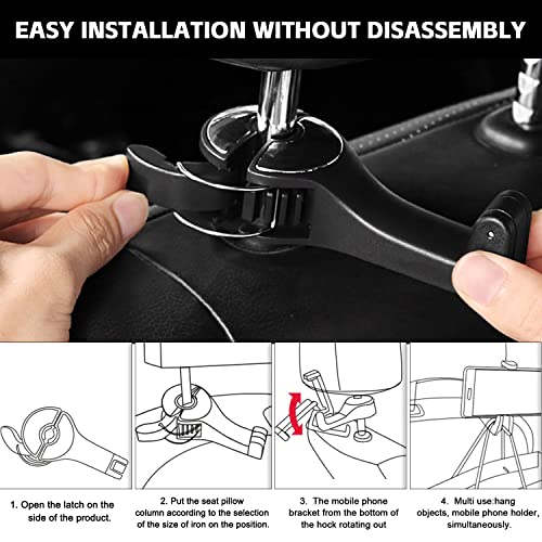 Facile da Installare -- Appendiabiti per Auto senza rimozione, design a mezza apertura, non è necessario smontare il poggiatesta, senza attrezzi o colla, basta appenderlo al palo di supporto. Gruccia Appendiabiti Auto anche facile da smontare o sostituire con un'altra auto quando non è in uso. Car Back Seat Hooks essere utilizzato anche come supporto per cellulare sul sedile posteriore per liberare le mani.