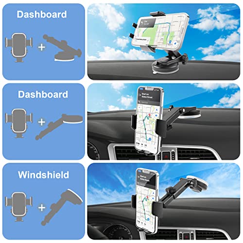 Angoli di Visione Multipli: l'asta telescopica a braccio lungo offre una regolazione della lunghezza di 4,25"-6,5" (10,8 cm-16,5 cm) e una regolazione dell'angolo di 270°, la parte posteriore del supporto smartphone auto ha un giunto sferico ruotabile a 360°, queste parti flessibili ti consentono per utilizzare il telefono all'angolazione e alla distanza più adatte.