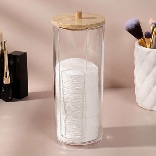【Facile da Pulire】: La superficie liscia dell'acrilico facilita la pulizia del contenitore. Puoi pulire il porta cotton fioc con un panno umido per rimuovere polvere o sporco. Il rivestimento in bambù è sfoderabile e facile da pulire.