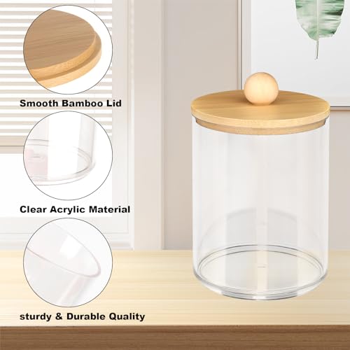 【Resistente alla polvere e all'umidità】: I contenitori trasparenti per bagno hanno un coperchio superficiale liscio, un'ampia apertura, i coperchi si adattano perfettamente al supporto per cotton fioc, facili da indossare e da togliere.