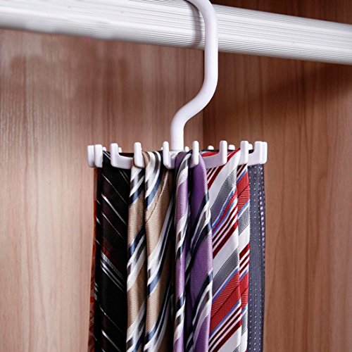 LQZ (TM) Porta cravatte, cravatte a farfalla e fazzoletti a 20 ganci per grucce multiuso, rotazione antiscivolo bianco
