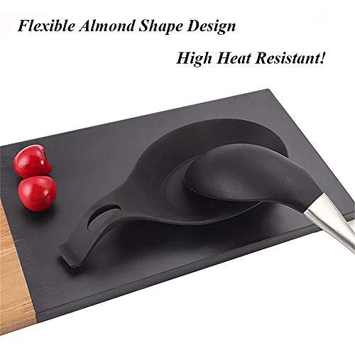 【DESIGN UNICO】 Il poggiamestolo in silicone per zuppa ha un grazioso design a forma di mandorla, semplice e pratico, ha un'ampia area di riposo e una maniglia rigida per aiutare a mantenere gli utensili da cucina caldi in posizione.
