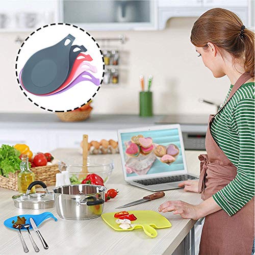 Porta Cucchiaio Cucina, 6 Pezzi Porta Cucchiaio Silicone, Poggia Cucchiaio Silicone Cucina, Silicone Forma Flessibile Mandorla Resistente Calore Resto Cucchiaio per Spatole, Cucchiai (Stile B)