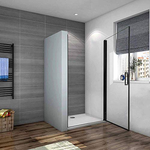 Porta Doccia Battente Per Nicchia Vetro Trasparente 8mm Telai Nero Opaco Doccia a Filo Pavimento 80x200 cm