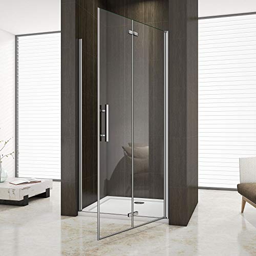 195 cm Porta Doccia Per Nicchia Battente e Pieghevole a Libro In Vetro Temperato Trasparente Anticalcare Da 6 mm larga 110cm