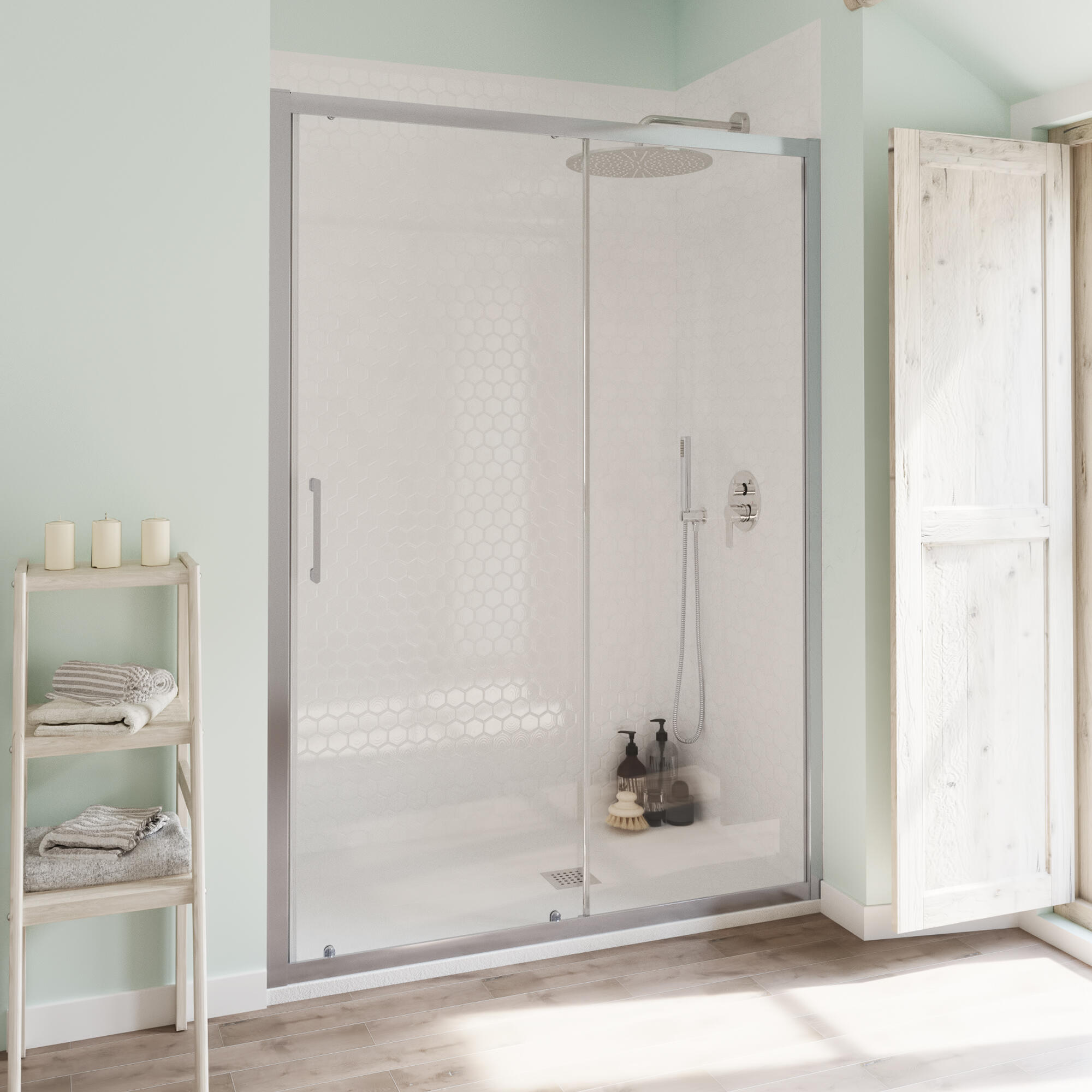 Installazione in nicchia e abbinabile a lato fisso per installazione ad angolo. Adatto anche per spazi medio grandi. Ideale per chi vuole coniugare Privacy e stile. Facile da installare e regolare