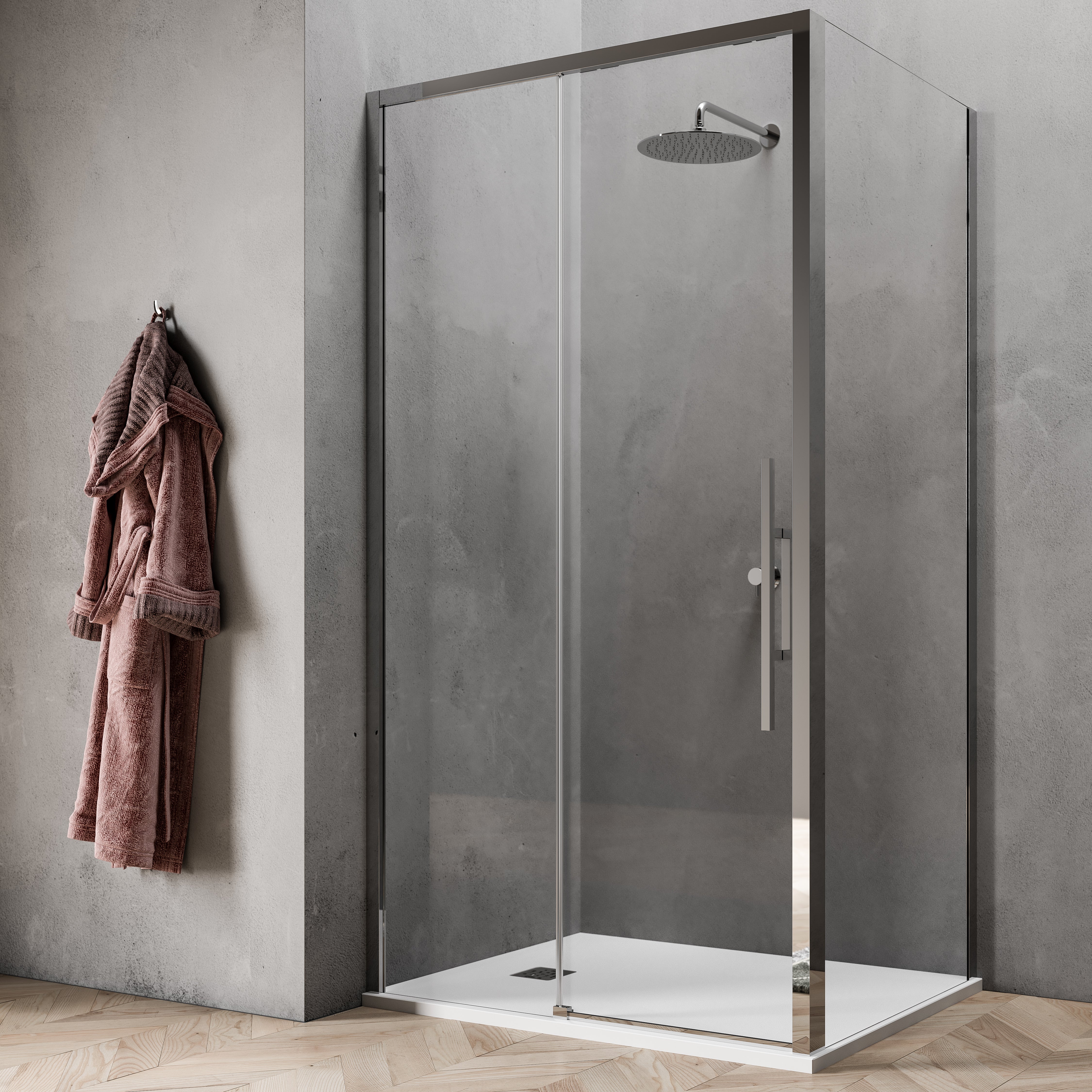Installazione in nicchia e abbinabile a lato fisso per installazione ad angolo. Ideale per chi ama un design raffinato e minimalista. Ampia maniglia
