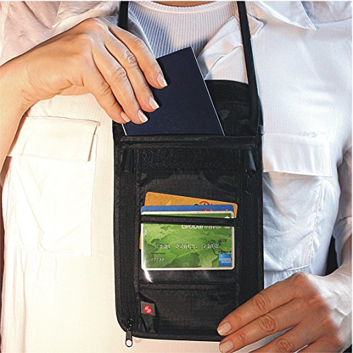Porta Documenti da Viaggio - Miglior Portafoglio da viaggio in nylon collo Stash con Blocco Rfid per Estrema Protezione delle tue Carte e Passaporti con Tasca per Banconote - Vari Scomparti
