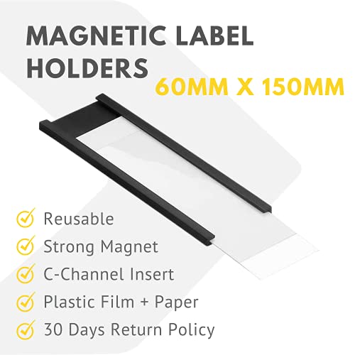 Porta etichette magnetiche 60 mm di altezza x 150 mm di lunghezza, confezione da 100 con inserti in carta e protezioni in plastica, etichette magnetiche per mensole, cartelli e biglietti