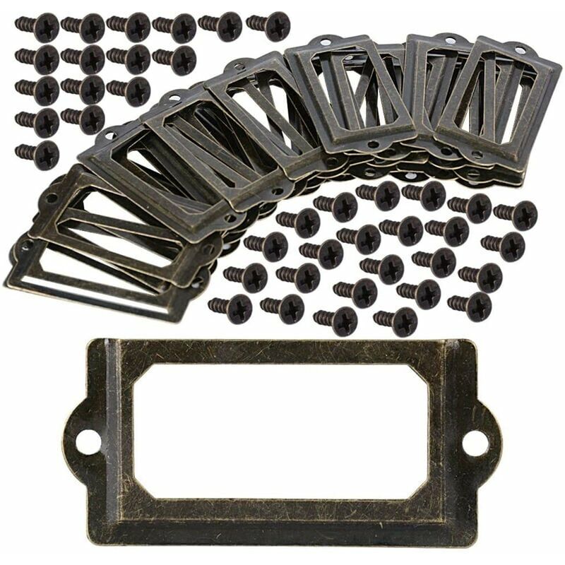 Dimensioni del prodotto: 70 x 33 mm Etichette applicabili: 47 x 21 mm Spedizione: 30 cassetti porta etichette Materiale in ferro, robusto e durevole.< br/> Design antico, raffinato e pratico. Ideale per cassetti, librerie, armadi.