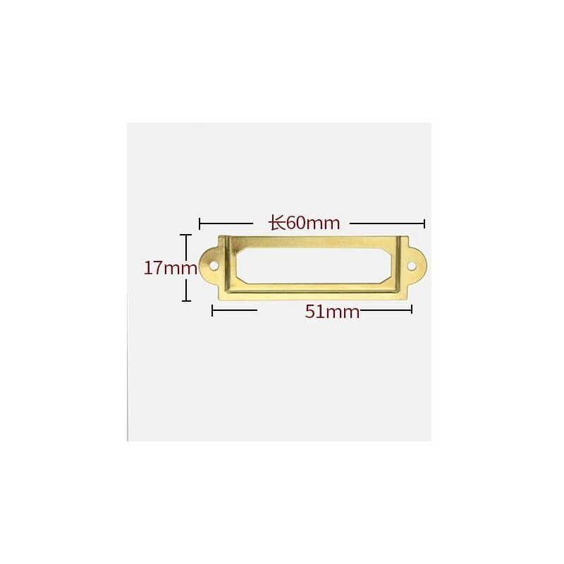 Descrizione del prodotto Materiale: ferro Dimensioni: 60*17 mm Contenuto della confezione: 30 pezzi * scatola per etichette Materiale: il nostro porta etichette retrò è realizzato in materiale metallico di alta qualità. Design antico e robusto, perfetto per decorare mobili. FACILE DA INSTALLARE: il porta etichetta in metallo può essere facilmente fissato a superfici in legno con piccole viti. Facile da seguire, può anche essere facilmente aggiornato, prenditi il tuo tempo. Ampia applicazione: adatto per schedari, cassetti, armadi, portagioie, serrature per scatole regalo, scatole di legno, selezionatori antichi, cantine, ecc. .