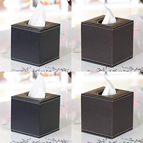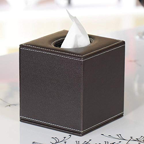 Porta Fazzoletti, Dispenser per Fazzoletti in Pelle PU, 13.5 x 13.5 x 13.5 cm, Marrone