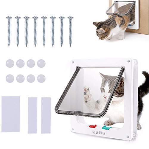 Porta per cani e gatti, 4 vie, chiusura extra large, per porte interne, resistente alle intemperie, per gatti, 23,5 x 25 x 5,4 cm, porta per cani, porta per gatti, patta per animali