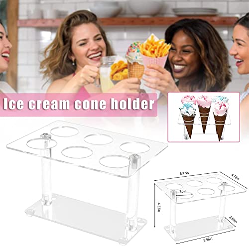 Porta coni gelato, 6 fori in acrilico porta gelato trasparente supporto per cono gelato porta espositore gelato per coni di cialde, sushi rotolo di mano, popcorn, festa di compleanno nozze