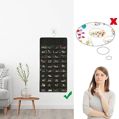 Porta Gioielli da Appendere, Portaoggetti per Gioielli da Appendere con Gancio Girevole a 360 Gradi, Organizer per Appendere Gioielli, 48 Tasche Doppia Faccia Collana Earring Holder Organizer, Nero