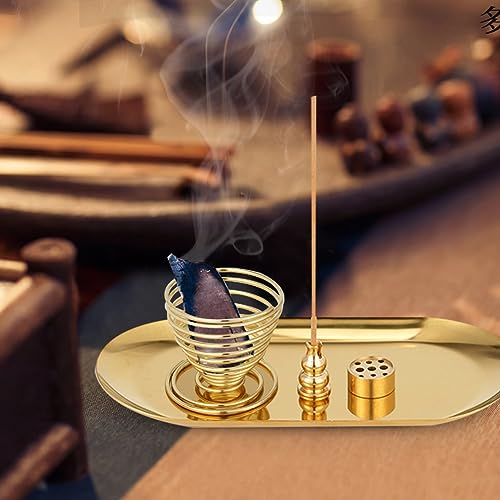 Porta incenso, 5 In 1 porta brucia incenso per Palo Santo, Sage, bruciatore incenso Cone Coil porta incenso metallo vassoio porta incenso ottone per Home Yoga Meditation