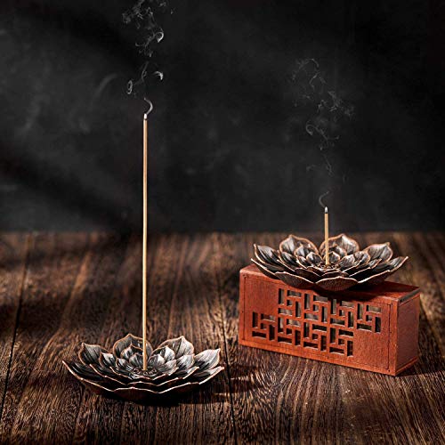 Porta Incenso Tibetano,Raccoglitore di Cenere,Porta Incenso Loto,Lotus Incenso,Incenso Bruciatore Loto,Supporto per Bastoncini di Incenso,Incense Burner