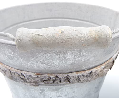 Set di 2 porta vaso in latta invecchiata a forma secchiello con manico - misure grande diametro 18 x altezza cm 15 - misure piccolo diametro 15 altezza 12