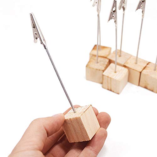Porta Memo e Porta Messaggio da 10 Pcs, Porta Note Verticale/Portafoto con Clip in Coccodrillo e Base in Pino, Adatto per Decorazioni Ufficio/Matrimonio/Festa/Casa