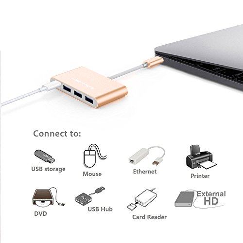 Porta multipla USB-C, adattatore e convertitore USB 3.0 tipo C Hub, per MacBook, ChromeBook Pixel, Nokia N1, Nexus 6/6P e altri dispositivi con connessione C Hub, 1 porte di ricarica USB C e 3 porte USB A