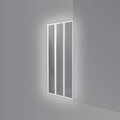 Le lastre sono acriliche opache, effetto bollicine. Box-Porta doccia nicchia acrilico apertura a libro, soffietto. Modello reversibile per installazione a destra o sinistra. Estensibilità laterale per la regolazione per eventuali fuori squadro delle pareti. Apertura a soffietto verso l'interno. Larghezza regolabile per garantire una più ampia adattabilità alle misure del vostro vano doccia.