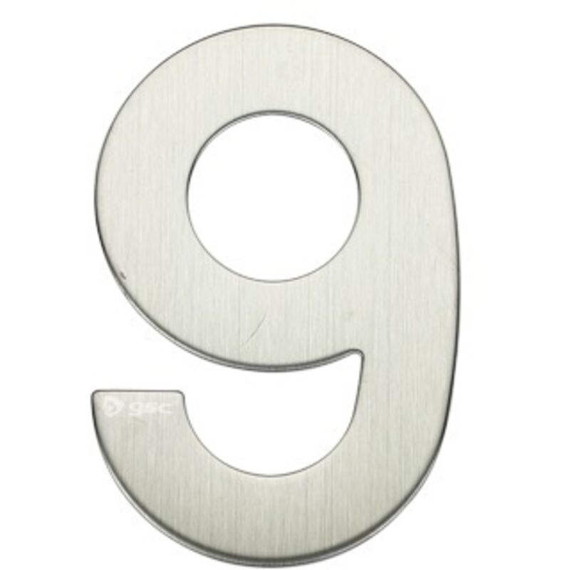 Numeri di porta con adesivo Materiale: acciaio inossidabile Finitura nichel satinato Spessore: 2mm Montaggio: adesivo. Numero 9
