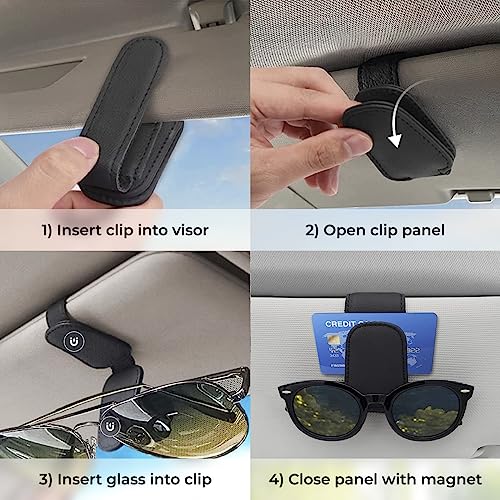 Comodo e sicuro porta occhiali auto magnetico che può anche essere utilizzato per fissare assegni, biglietti del parcheggio, carte di credito e sconti o cavi per la ricarica.