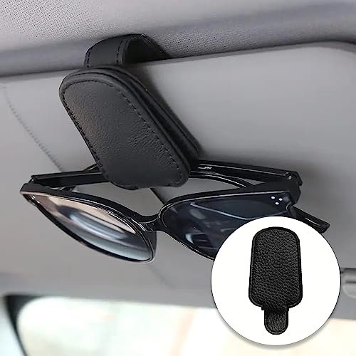Porta Occhiali Auto,Supporto per Occhiali da Sole Magnetica per Visiera per Auto,Clip Portaocchiali Auto,Pelle Clip per Biglietti da Visita Supporto per Occhiali Sole da Auto, Nero
