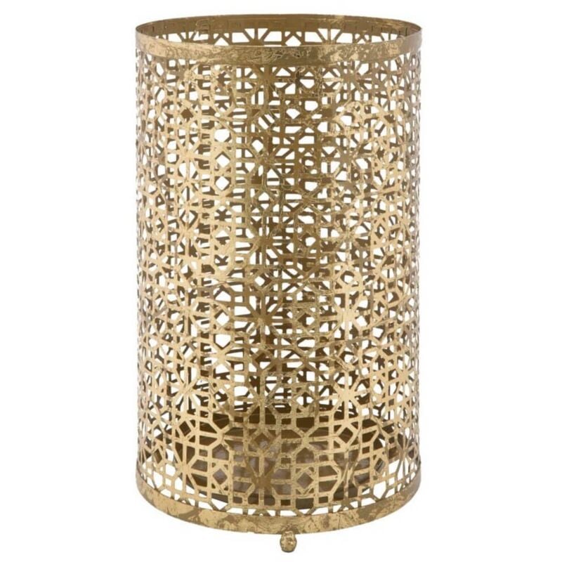 Il prodotto descritto è un porta ombrelli dal design affascinante e raffinato. La struttura del porta ombrelli è realizzata in ferro di colore oro, conferendogli un aspetto elegante e lussuoso. Il colore dorato aggiunge un tocco di glamour e si integra bene in ambienti di stile classico o moderno. La forma rotonda del porta ombrelli suggerisce un design armonioso e bilanciato. La struttura presenta anche motivi decorativi che aggiungono dettagli artistici al prodotto, conferendogli un aspetto più sofisticato e distintivo. Questi motivi decorativi possono essere intagli, disegni traforati o altri elementi che arricchiscono l'estetica complessiva del porta ombrelli. La funzione principale del prodotto è quella di fornire un supporto stabile e decorativo per riporre ombrelli, contribuendo così all'organizzazione degli spazi e all'aggiunta di un elemento decorativo all'ambiente circostante. È particolarmente adatto per l'uso in ingressi, hall o altre aree in cui gli ombrelli possono