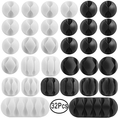 Porta filo, Outee 32 pz Cord Holder Clip per sistema di gestione cavo autoadesiva per cavo, cavo e filo, nero e bianco